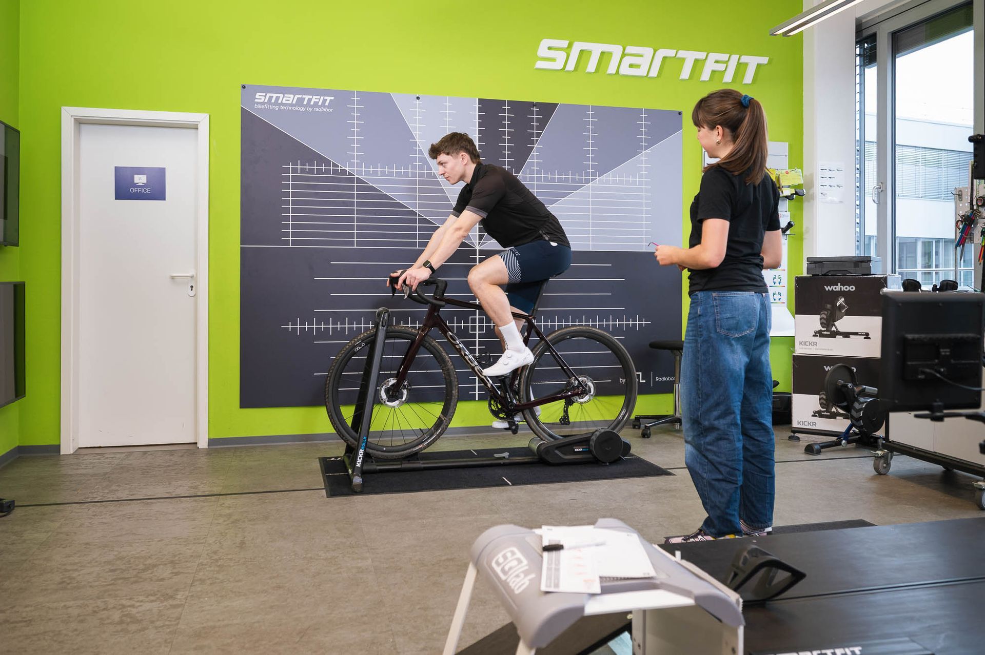Im Radlabor bieten wir Bikefittings, Leistungsdiagnostiken und Neukaufberatungen an. Das Ziel ist es, dass unsere Kund*innen optimal auf dem Fahrrad sitzen, sodass sie ihre Leistung verbessern können, schmerzfrei unterwegs sind und Beschwerden vorbeugen.